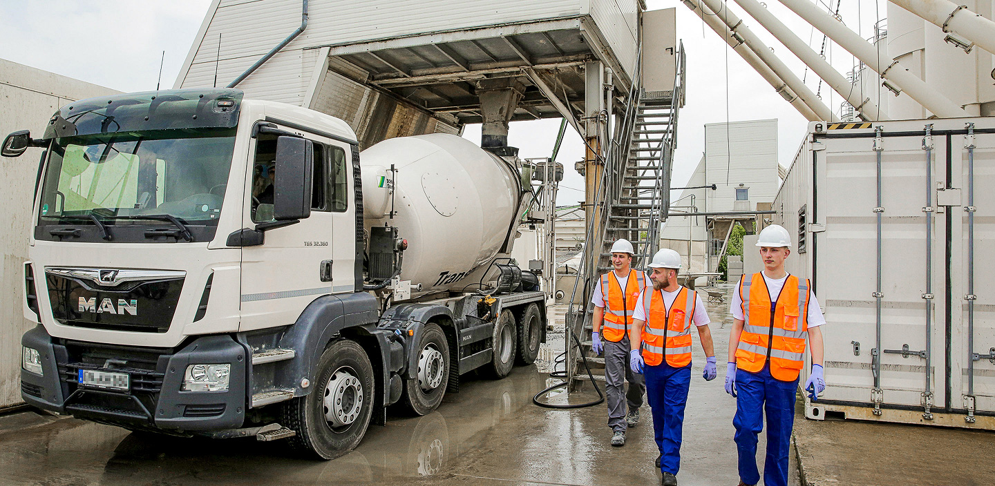 Ein dichtes Netz von Transportbetonwerken sorgt dafür, dass die Fahrmischer keine langen Strecken fahren müssen. Auf der Baustelle nicht benötigte Restmengen werden in Frischbetonrecycling-Anlagen aufbereitet und dem Materialkreislauf wieder zugeführt. Auch beim Abriss von Gebäuden können Bausteile aus Beton noch effektiv genutzt werden: Der Altbeton wird aufbereitet und als Straßenbaustoff oder auch für die Herstellung neuen Transportbetons verwendet.